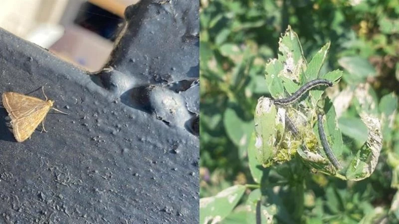 Zararlı hakkında yapılan bilgilendirmelerde ise şunlar aktarıldı; “Ergin kelebekler kanatları üzerinde beyaz sarı renkli çizgi ve lekeler olan, açık kahverenginde bir kelebektir. Vücut uzunluğu 10-12 mm, kanat açıklığı 19-26 mm’dir. Oval şekilli ve parlak olan yumurta önce şeffaf ve renksiz ise de daha sonra portakal sarısına, larvanın çıkışına yakın griye döner. 2-20 tanesi bir arada bırakılan yumurtalar 0.8 - 1.0 mm. uzunluğundadır. Birinci dönem larvanın vücut uzunluğu 1.5-2.5 mm., ikinci dönem 3.0 - 5.5 mm, üçüncü dönem 8.0-10.0 mm, dördüncü dönem 9.0 - 12.0 mm. ve son dönem larvanın 18.0 - 25.0 mm.’dir. Olgun larva siyaha yakın yeşil renkli olup, sırt ve yanlarında boydan boya uzanan açık ve koyu renkli çizgiler vardır. Pupa 8-13 mm. uzunluğunda olup, 20 - 70 mm uzunluğunda, 3 - 4 mm genişliğinde silindirik içi ağ ile örülü toprakta bir kokon içinde bulunur. Kışı pupa kokonu içinde olgun larva olarak toprağın 5 - 7 cm derinliğinde geçirir. İlkbahara girerken pupa olur. Pupa süresi 14-18 gün olup bunun ilk 4 - 5 günü prepupa süresidir. İlk erginler nisan ortalarında uçmaya başlarlar. Gece faal, gündüz hareketsizdirler. Polen tozu ve nektar ile beslenebilen dişiler iki hafta kadar yaşar ve bir dişi 60 - 400 yumurta bırakır. Bu besinleri bulamayanlar iki ay kadar yaşarsa da yumurta bırakamaz. Yumurtalar özellikle Chenopodium sp. (Kazayağı, İştir, Sirken) ve diğer yabancı ot yapraklarının alt yüzüne bırakılır. Yumurta 2 - 10 günde, çoğunlukla 4 - 6 gün sonra açılır. Yumurtadan çıkan larva bu bitkiler üzerinde beslenmeye başlar. 1-2 Gömlek değiştirdikten sonra kültür bitkisine geçer, burada obur bir şekilde beslenerek yaprakların sadece damarlarını bırakır. Populasyonun yüksek olduğu yerlerde tüm yeşil aksam saldırıya uğrar. Beş dönem geçirdikten sonra olgunlaşan larva pupa dönemini geçirmek üzere toprağa iner. Besin ve iklim şartlarına göre larva dönemi 14 - 22 gün sürmektedir. Bir yılda mevsim şartlarına göre 2-5 ila döl vermektedir. Üreticilerimizin bu zararlı hakkında daha detaylı bilgi almak üzere İl ve İlçe Müdürlüklerimize başvurmaları önem arz etmektedir.”