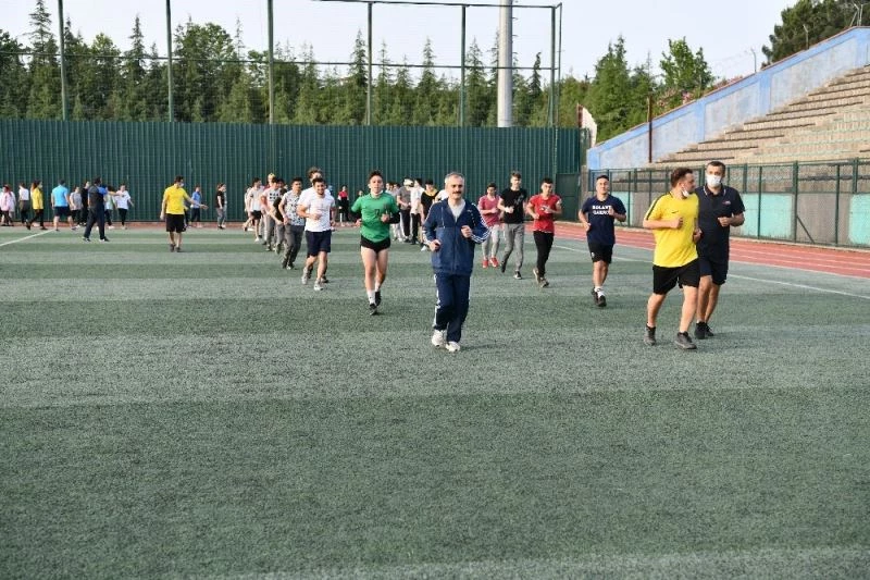 Başkan Çiftçi daha sonra, ısınma hareketleri yaptığı gençlerle sahayı turladı.