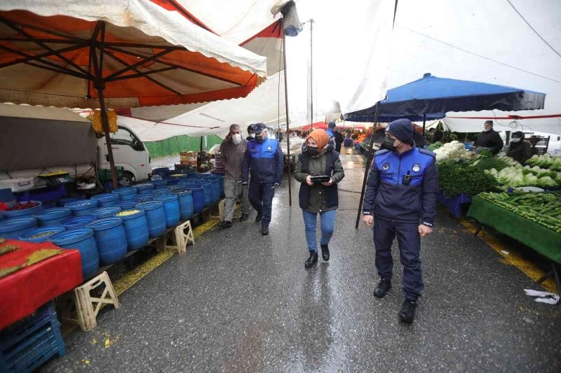İlçede kurulan pazarları denetleyen zabıta ekipleri, tezgahları tek tek gezerek fiyat etiketi kontrolü, etiketlerin düzgün konulması ve rakamların okunabilir olması gibi hususları kontrol ederek, uyarılarda bulunuyor. Tüketici hakları ile ilgili bilgi veren ekipler, pandemi dolayısıyla HES kodu sorgulaması da gerçekleştiriyor. Pandemi nedeniyle kurallara uyulması konusunda titizlik gösteren zabıta ekipleri, maske, mesafe ve temizlik konusunda megafon ile vatandaşları ve pazarcı esnafına uyarılarda bulunuyor.