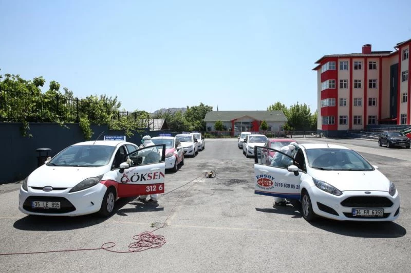 İSTANBUL (AA) - Çekmeköy Belediyesi, yeni tip koronavirüs (Kovid-19) salgınında normalleşme süreciyle birlikte ilçe genelindeki sürücü kursu araçlarını dezenfekte etti.