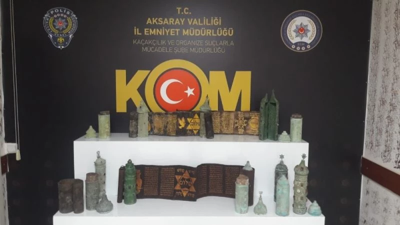 Edinilen bilgiye göre, rutin yol kontrolü yapan Aksaray Emniyet Müdürlüğü Kaçakçılık ve Organize Suçlarla Mücadele (KOM) Şubesi ekipleri şüphe üzerine Adana’dan Aksaray istikametine seyreden araç çekicisini durdurdu. Ehliyet ve ruhsat sorduğu sürücünün tedirgin hal ve hareketlerinden şüphelenen KOM ekipleri, çekici üzerinde bulunan otomobilde arama yaptı. Yapılan aramada tarihi eser olarak değerlendirilen 25-40 cm arası değişen 13 adet silindir metal kutu içerisinde 100-150 cm uzunluğunda üzerinde çeşitli figür, amblem ve yazı işlemelerinin bulunduğu deri tabaka yaprak ele geçirildi. Çekici sürücüsü S.Ç. (41) ve yanında bulunan G.A. (49) gözaltına alınırken, olayla ilgili soruşturma başlatıldı.