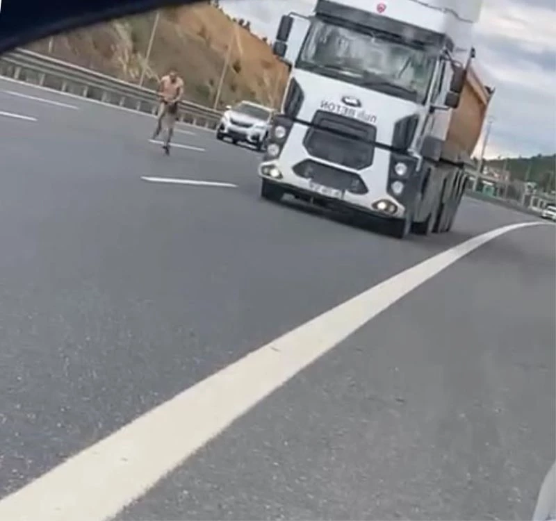Çekmeköy’de otobanda yarı çıplak halde koştu, canını tehlikeye attı
