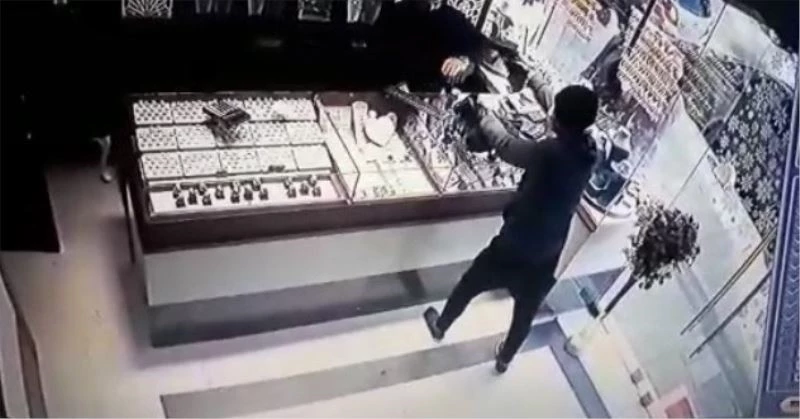Güvenlik kamerasına yansıyan görüntülerde maskeli bir şahıs elindeki silahla kuyumcu dükkanına giriyor. Silahı kuyumcudaki esnafa doğrultarak elindeki çantaya paraları koymasını istiyor. Esnaf para ve altınları çantaya koyuyor. Maskeli şahıs hızlıca kuyumcu dükkanından uzaklaşıyor.
