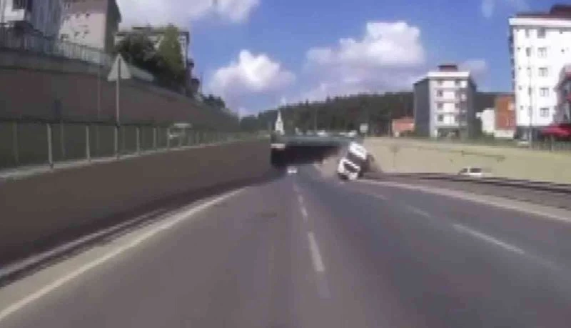 Çekmeköy-Şile Otoyolu’nda sürücüsünün direksiyon hakimiyetini kaybettiği hafriyat yüklü kamyonun bariyerlere çarparak devrildiği kazanın yeni görüntüleri ortaya çıktı.