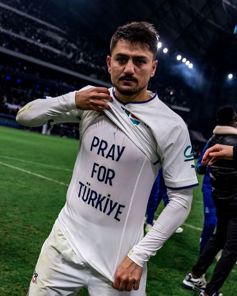 Fransız temsilcisi Marsilya’da futbol hayatını sürdüren milli futbolcu Cengiz Ünder, Fransa Kupası Son 16 Turu’nda Paris Saint Germain ile oynadıkları maçta Türkiye’deki depremi unutmadı. Karşılaşmada giydiği formasının altında yer alan tişörte ’Türkiye için dua edin’ yazısını yazan Ünder, destek mesajını verdi.