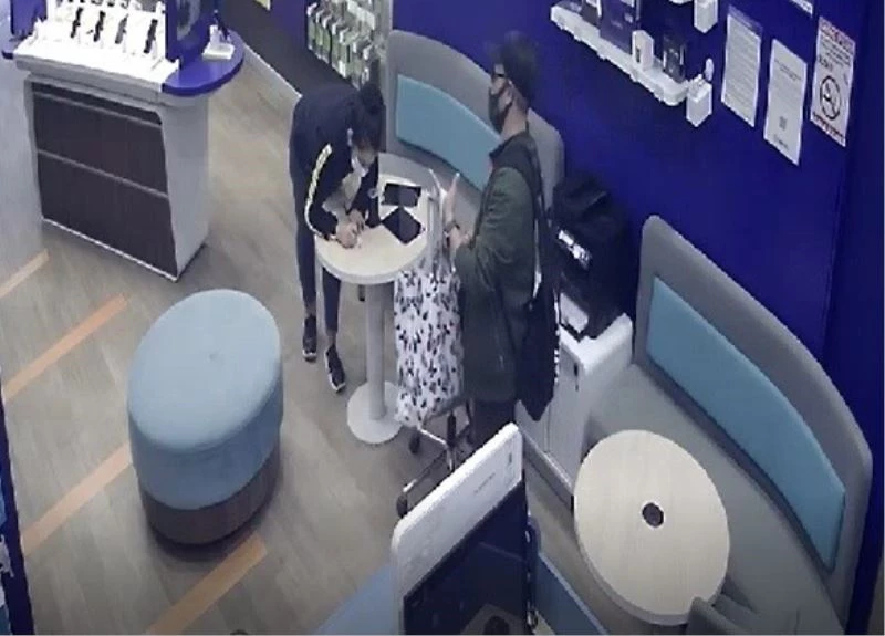 İş yeri çalışanın gözünün önünde telefonu çantasına attı
