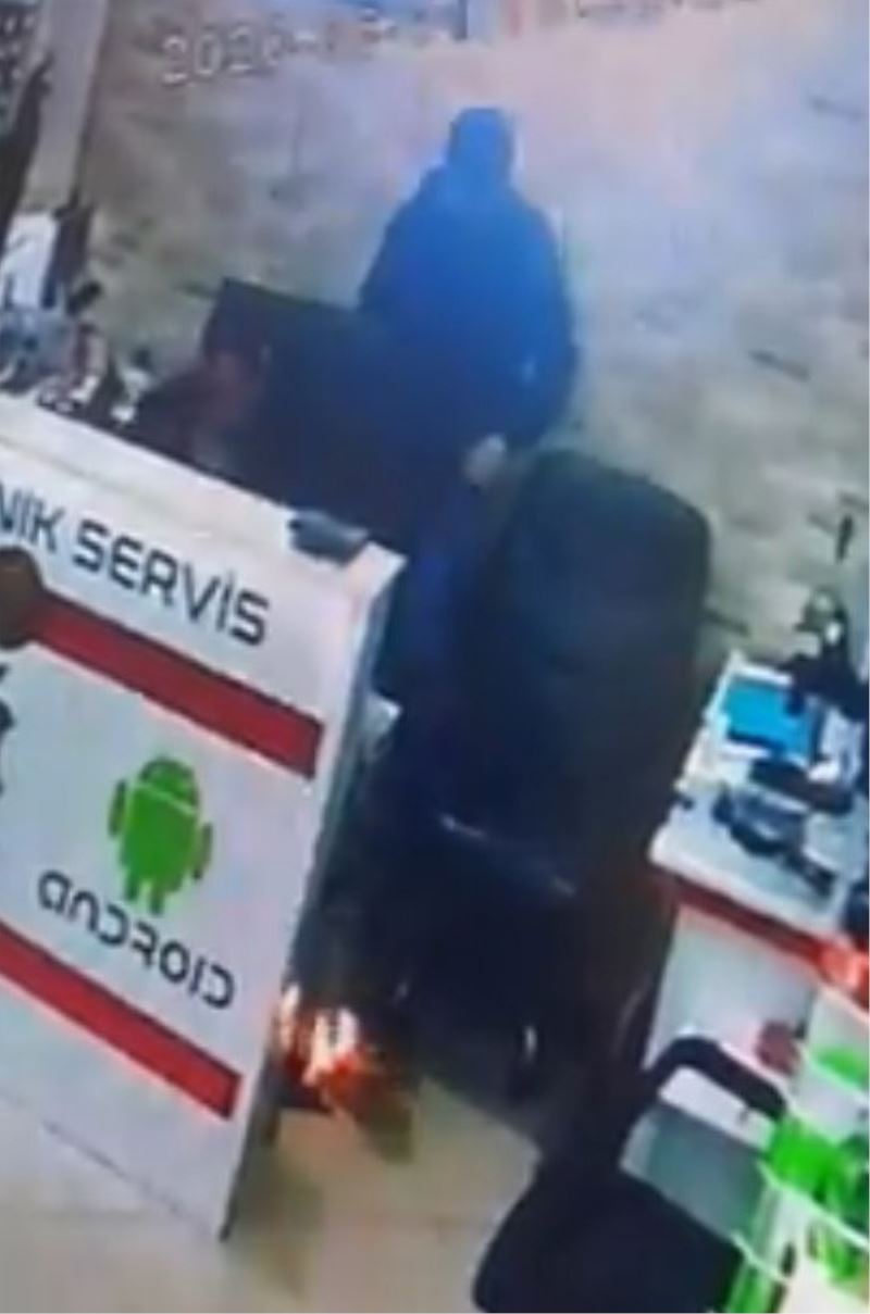 Manisa’nın Soma ilçesinde tamir edilmek istenen bir cep telefonunun bataryası bir anda alev alarak patladı. Paniğe neden olan patlama anı, iş yerinin güvenlik kameralarına yansıdı.