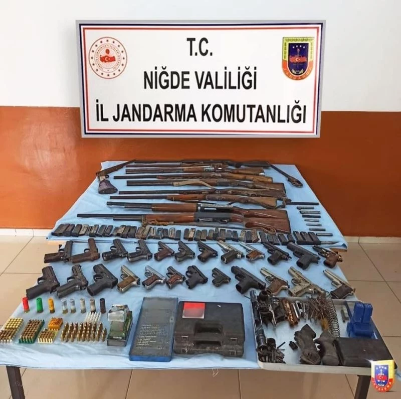 Niğde İl Jandarma Komutanlığı ekipleri alınan istihbaratı değerlendirerek bir iş yerine operasyon düzenledi. Jandarma ekiplerinin iş yerinde yaptığı aramalarda 9 av tüfeği, 9 tabanca, 13 namlusu değiştirilmiş tabanca, 6 kurusıkı tabanca ve 41 tabanca şarjörü ile çok sayıda mühimmat ele geçirdi.