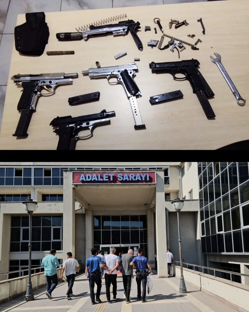 Asayiş Şube Müdürlüğü ekiplerince yapılan takip sonucunda, hırsızlık başta olmak üzere çeşitli suçlardan aranan Ö.Ö ve A.S.D.’nin birlikte kaldıkları ev belirlendi. Adrese düzenlenen operasyonla iki şüpheli yakalanarak gözaltına alındı. Yapılan ev aramasında ise suç işlerken kullandıkları 4 adet ruhsatsız tabanca ve tabanca parçalar ele geçirildi. Çok sayıda suç kayıtları bulunan şüpheli Ö.Ö. ve A.S.D. emniyetteki işlemlerinin ardından sevk edildikleri mahkemece tutuklandı.
