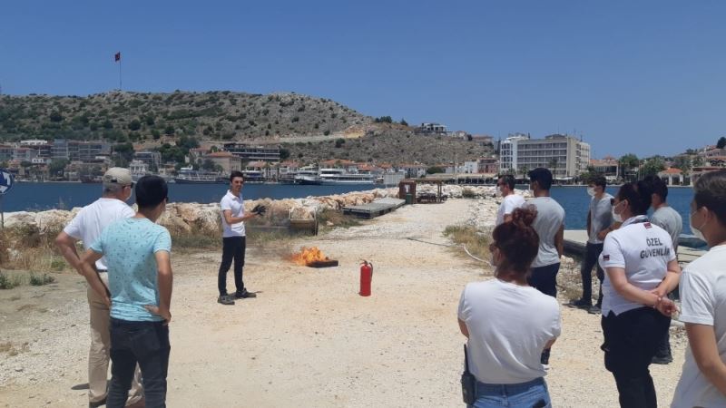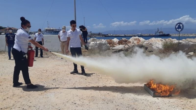 Çeşme Marina Acil Durum Müdahale ekibi, olası bir yangın ile mücadele edebilmek için aldıkları eğitim ile kabiliyetlerini arttırdı.