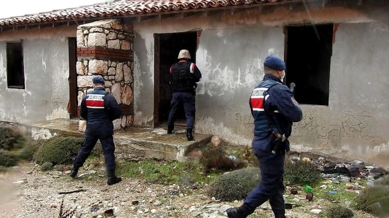Çeşme’de jandarma yasa dışı geçişe engel olmak için metruk binaları didik didik aradı