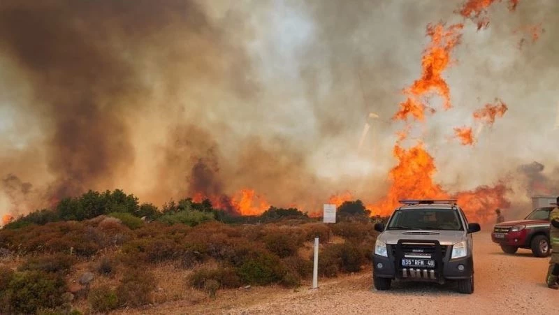 Çeşme Kutlu Aktaş Barajı yakınlarında bulunan makilik alanda saat 13.30 sıralarında çıkan yangın, rüzgarın da etkisiyle büyüyerek geniş bir alana yayıldı. Yangına İzmir Orman Bölge Müdürlüğü ekipleri; 3 uçak, 6 helikopterle havadan, 30 arazöz ve 4 dozer ile karadan müdahale ederken alevler, Rüzgar Enerji Santralleri’nin de (RES) etrafını sardı. Ayrıca İzmir-Çeşme otoyolunun Uzunkuyu mevkii, makilik alanda çıkan yangın nedeniyle trafiğe kapandı.
