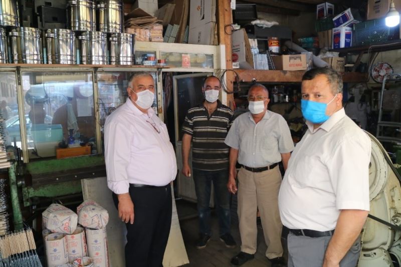 Oto Tamirciler Esnaf Odası Başkanı Necmettin Uzun’la birlikte Sobacılar Arastası, Bakırcılar Sitesi, Yukarı ve Aşağı Sanayi Sitesi’nde faaliyet gösteren işyerlerini denetleyen ÇESOB Başkanı Recep Gür, esnaf ve sanatkarlara maske, sosyal mesafe ve temizlik uyarısında bulundu.