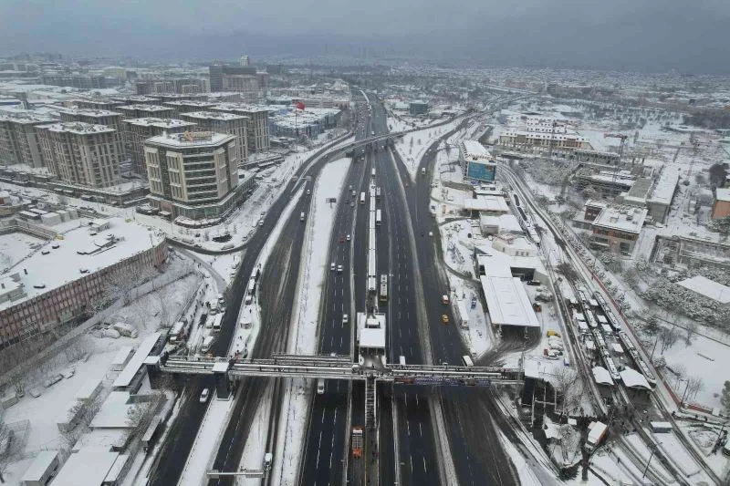 İstanbul’da etkili olan kar yağışı kenti beyaza bürüdü. Mega kentin bazı noktalarında trafik durma noktasına gelirken Cevizlibağ D100 karayolunda ise trafiğin sorunsuz aktığı görüldü. İşe gitmek için yola çıkan vatandaşlar uyarılara uyarak toplu taşıma araçlarını tercih etti. Vatandaşlar kar yağışı altında işlerine gitmek için metrobüs duraklarına gitmeye çalıştı. Beyaza bürünen İstanbul dron ile görüntülendi.