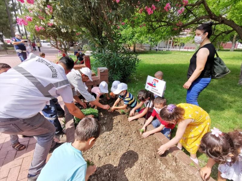 HATAY (AA) - Hatay'in Dörtyol ilçesinde, Çevre Koruma Haftasi etkinlikleri kapsaminda çocuklar aileleriyle parkta çiçek dikti.