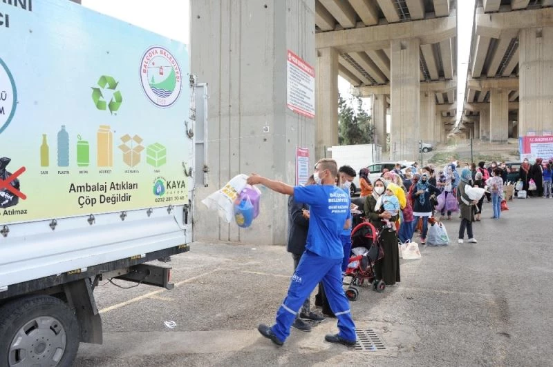 Balçova Belediyesi, geri dönüşebilir atıkları getiren her vatandaşın getirdiği atıklar karşılığında alışveriş çeki aldığı kampanya başlattı. Kampanyanın ilk haftasında 7 ton atık toplandı. Hem çevre temiz kaldı hem de mutfak masrafı çıktı.