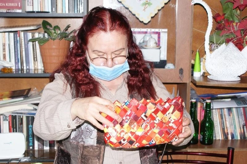 Öğretmenlikten emekli olduktan sonra baba ocağı Manyas’a dönen Gülay Kurt, çöpe atılacak materyallerden değişik süs eşyaları yapıp, komşularına ve arkadaşlarına hediye ediyor.