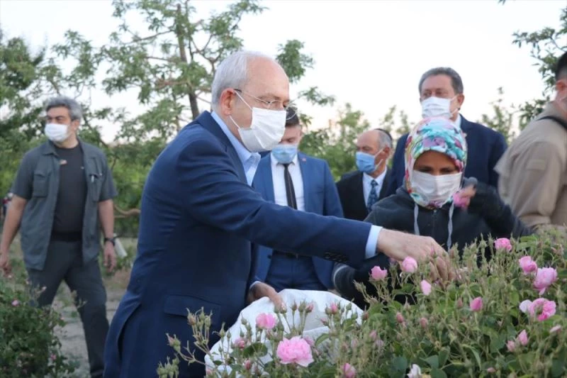 Kılıçdaroğlu, beraberindeki partililerle bazı temaslarda ve ziyaretlerde bulunmak üzere geldiği Isparta'nın Gönen ilçesindeki bir gül bahçesini ziyaret etti.