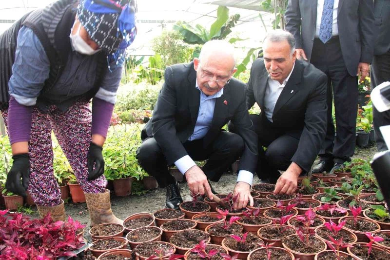 Köyceğiz Beyobası Mahallesinde bulunan ve Muğla Büyükşehir Belediyesi’nin alım garantisi süs bitkisi serasını gezen CHP lideri Kılıçradoğlu, burada kadınlar ile birlikte çiçek dikti.