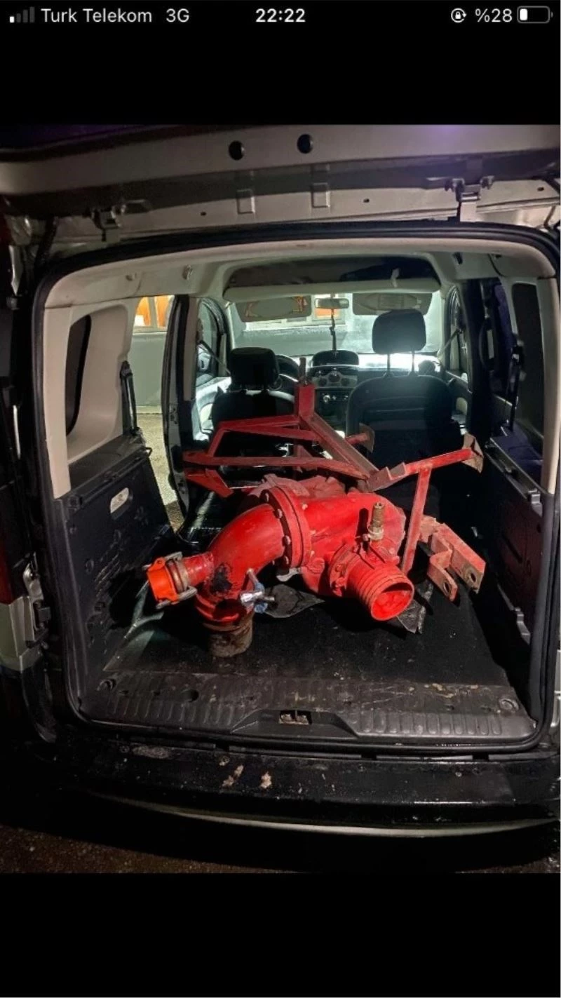 Gözaltına alınan R.D. (34), A.B. (21) ve R.B. (27) çaldıkları su pompasıyla yakalandı.
