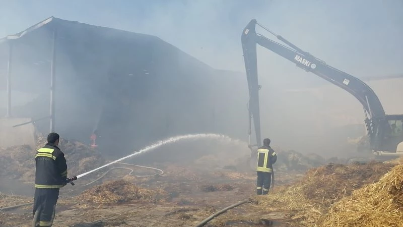 Çiftlikte çıkan yangında bin 200 ton saman kül oldu