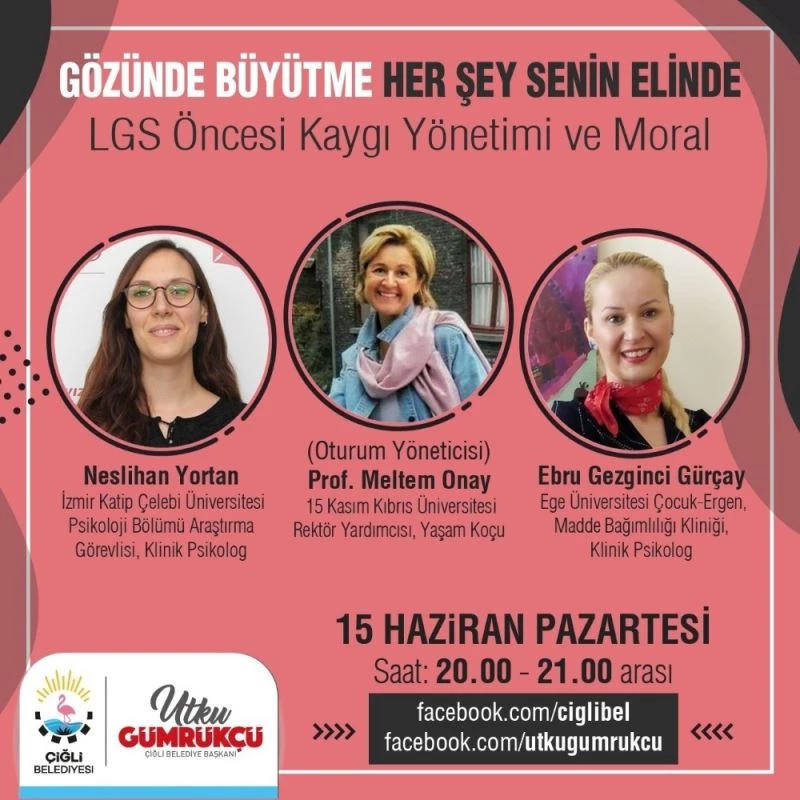 Çiğli Belediyesi tarafından Liselere Giriş Sınavına (LGS) girecek öğrencilere psikolojik destek olmak amacıyla bu akşam “LGS Öncesi Kaygı Yönetimi ve Moral” konulu online toplantı düzenleniyor.
