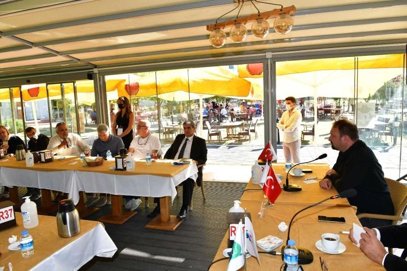 Çiğli Belediyesinin ev sahipliğinde Akvaryum Kafe Restoran’da düzenlenen toplantıya; Belediye Başkanı Utku Gümrükçü, İzmir Emlakçılar Odası (İZEKO) Başkanı Mesut Güleroğlu, başkan yardımcıları, muhtarlar ve İzmir Katip Çelebi Üniversitesinin bulunduğu Balatçık Mahallesi’nde hizmet sunan emlakçılar katıldı.