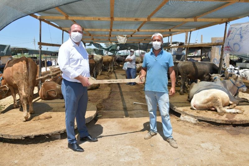 Kurban pazarlarını ziyaret eden Çiğli Belediye Başkanı Utku Gümrükçü, kurban satışları ve fiyatlarıyla ilgili bilgi aldı. Vatandaş ve satıcı esnafı dinleyen Başkan Gümrükçü, bayram telaşına kapılmadan gerekli tüm tedbirleri almaya devam ettiklerini vurgulayarak, “Kurban bayramlarının olmazsa olmaz bir geleneği var; el sıkılarak pazarlık yapılması. Bu gelenek pandemi nedeniyle bulaşma riskini arttırıyor. Biz de satıcı ile vatandaşın bulaşma riskini engellemek için sopa kullanılmasına karar verdik. Kentimizde misafir ettiğimiz kurban satıcıları ve Çiğlili hemşerilerimizin Kurban Bayramını herhangi bir sıkıntı yaşamadan geride bırakması adına çalışmalarımıza devam ediyoruz. Bu kapsamda hayvan pazarında detaylı bir dezenfekte çalışması yaptık. Pazara dezenfekte cihazları yerleştirdik. Maskesi olmayan vatandaşlarımızın bu ihtiyacını hemen karşıladık. Maske dağıtımına devam edeceğiz. Tüm imkanlarımızı kentimizde sağlıklı bir bayram yaşamak için seferber ediyoruz” dedi.