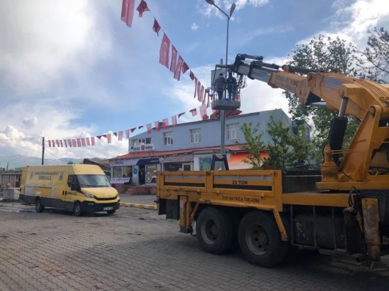 Erzurum Büyük Şehir Belediye Başkanı Mehmet Sekmenin göndermiş olduğu ekipler ilçe esnafını mağdur etmeden, caddeyi ışıklı süslemelerle aydınlatarak güzel bir görüntüye kavuşturdu.