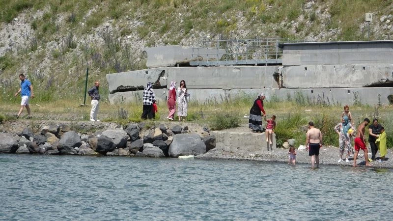 Ardahan’ın Çıldır ilçesinde, kış aylarında yüzeyi tamamen buzla kaplanan Çıldır Gölü, kavurucu sıcaklarda ise Ege ve Akdeniz sahillerini aratmayan güzelliğiyle tatilciler ile bölge halkının akınına uğruyor.