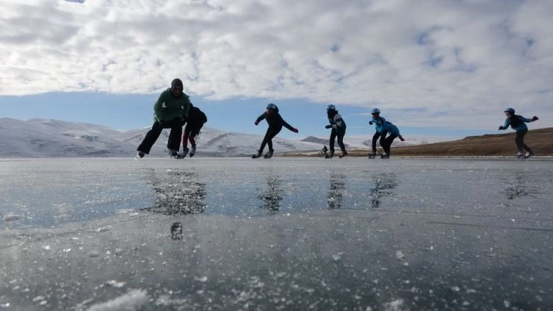 Türkiye’nin en büyük doğal buz pistinde bir araya gelen çocuklar, paten yaparak gönüllerince eğlendi. Buz üstünde dakikalarca patenle kayan çocuklar, "İnanılmaz bir göl ve burada olmak çok güzel. Doyulmaz anlar yaşadık" dedi.
