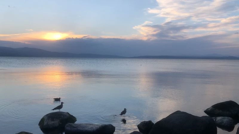 Doğu Anadolu’nun en büyük gölleri arasında yer alan Kars Çıldır Gölü’nde, gün batımında kartpostallık görüntüler ortaya çıktı.
