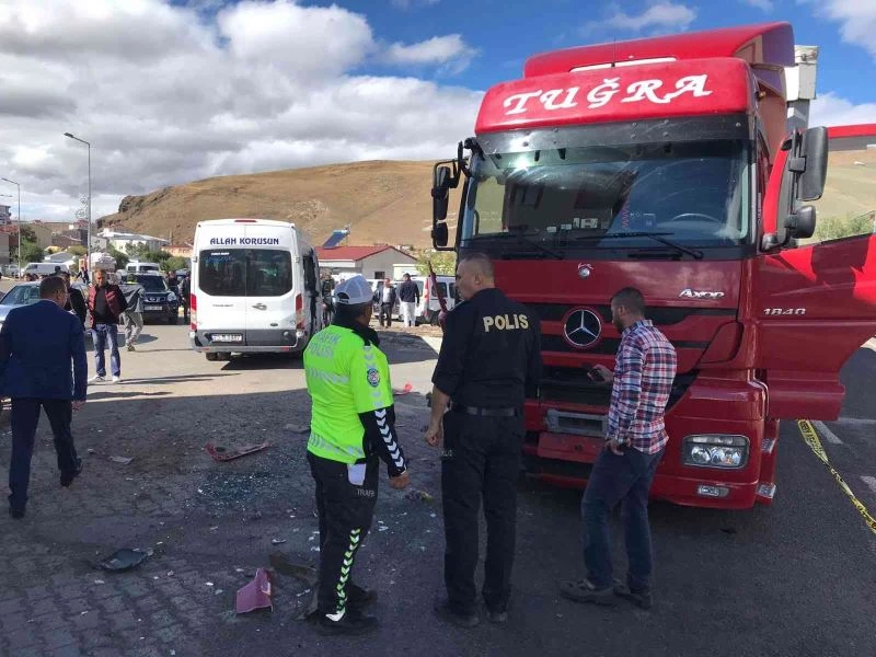 61 ABV 352 plakalı tır ile 75 M 0487 plakalı öğrenci servisi Çıldır ilçe merkezindeki Aşık Şenlik heykeli kavşağında çarpıştı.