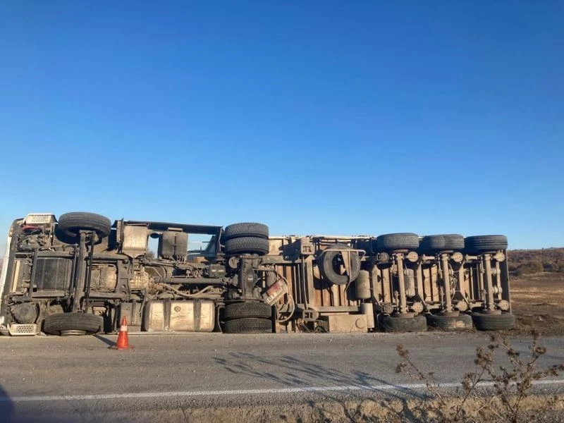 Eskişehir’de seyir halindeyken kontrolden çıkan çimento yüklü tır, yol kenarına devrildi. Kazada tır sürücü yaralandı.