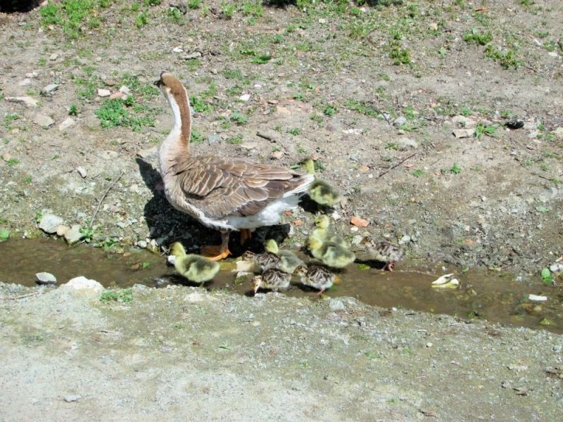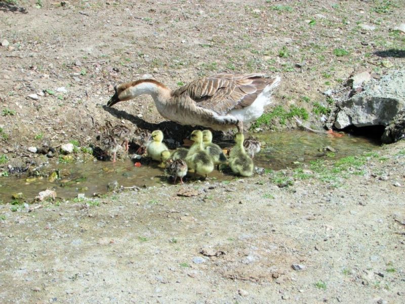 Tokat Yeşilyurt ilçesinde kümes hayvanlarıyla uğraşan Ahmet Demirel’in beslediği Çin kazı kuluçkaya yattı. Demirel, kuluçkaya yatan Çin kazının altına kaz yumurtalarını yanı sıra 5 adet de hindi yumurtası koydu. Yumurtadan çıkan hindi civcivleri, kaz civcivleri ile birlikte yemlenmeye başladı. Anneleri olduğunu sandıkları Çin kazının peşinden ayrılmayan hindi civcivleri, kaz civcivleri ile birlikte suya girmeye başladı. Sığ suda dolaşan hindi civcivlerinin o anları kameralara yansıdı. Demirel, fazla sayıda kazı olduğu için bir kazının yumurtasının eksik kaldığını söyledi. Yumurtası eksik kalan kazının altına hindi yumurtası koyduğunu ifade eden Demirel, “Kuluçkadan 5 kaz civcivinin yanı sıra 5 hindi civcivi çıktı. Çin kazımız hindi civcivlerini sahiplendi. Kaz civcivleri suya girdiğinde hindi civcivleri de giriyor” dedi.