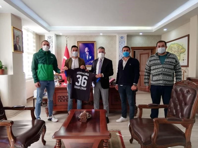 Bölgesel Amatör Lig (BAL) Ligi’nde 2020-2021 sezonunda Kars’ı temsil edecek Kağızman Gençlerbirliği Spor yöneticileri ziyaret ettikleri Kaymakam İshak Çınar ve Belediye Başkanı Nevzat Yıldız’a 36 numaralı formayı hediye ettiler.