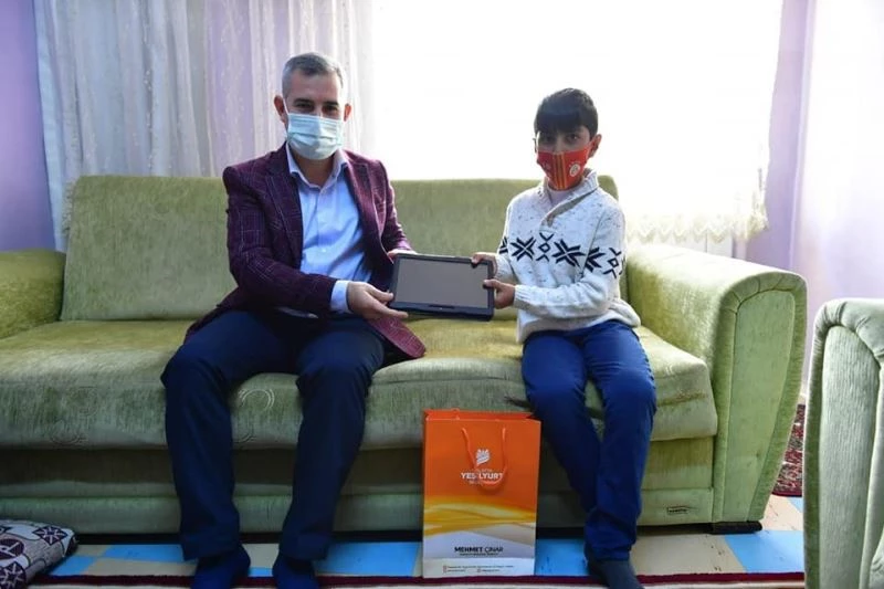 Yeşilyurt Belediye Başkanı Mehmet Çınar’da, İlyas ve Melekbaba mahallelerinde ikamet eden ve tablet almaya hak kazanan öğrencileri evlerinde ziyaret ederek, tabletleri teslim etti.