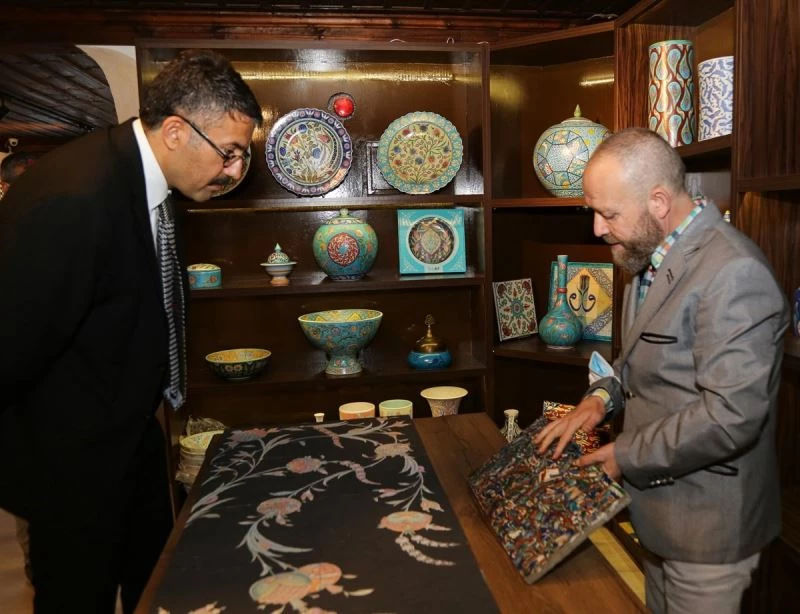 Tarihi Sipahi Konağı’nda hizmet veren Çini Sanatçısı İsmail Yiğit’in atölyesinde ziyaret eden Vali Çelik, eserleri inceleyip bilgiler aldı.