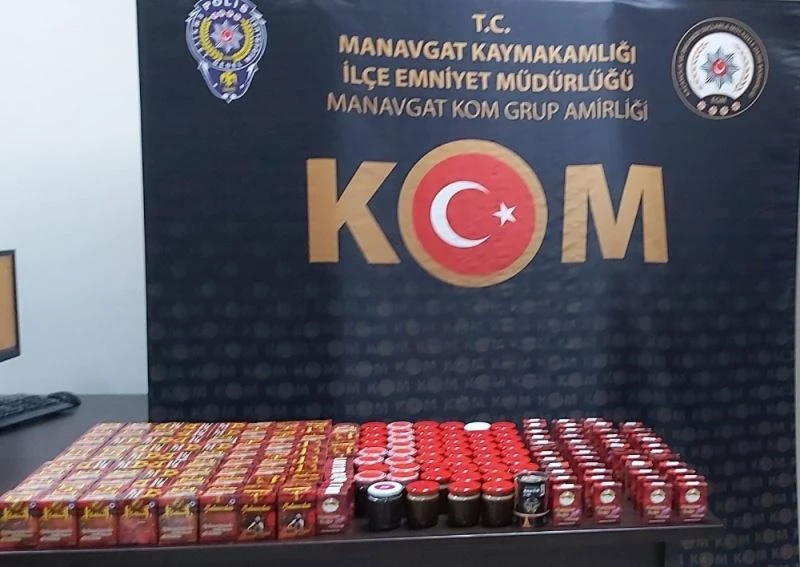 Manavgat Kaçakçılık ve Organize Suçlarla Mücadele Grup Amirliği tarafından dün akşam 21.05 sıralarında Hacıobası yol uygulama noktasında durdurulan bir araçta arama yapıldı. Araçta cinsel içerikli 422 adet ilaç ele geçirildi. Gözaltına alınan A.T. hakkında adli işlem yapıldı.