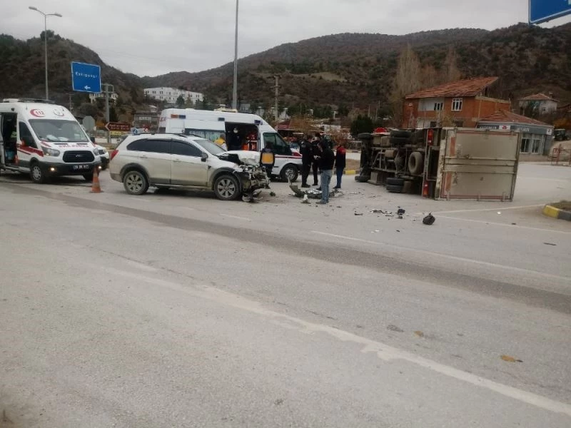Karabük’ün Eskipazar ilçesinde meydana gelen kazada, kavşakta cip ile kamyonet çarpıştı. Çarpışmanın etkisi ile kamyonet devrilirken, kazada 2 kişi yaralandı.
