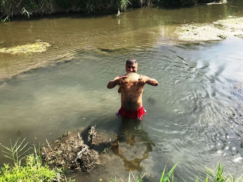 Ağrı Dağı’nın doğu eteklerinden çıkan ve Aras Nehri’nin bir kolu olan Karasu Çayı’nda çıplak elle balık tutan vatandaş görenler şaşkına döndü.