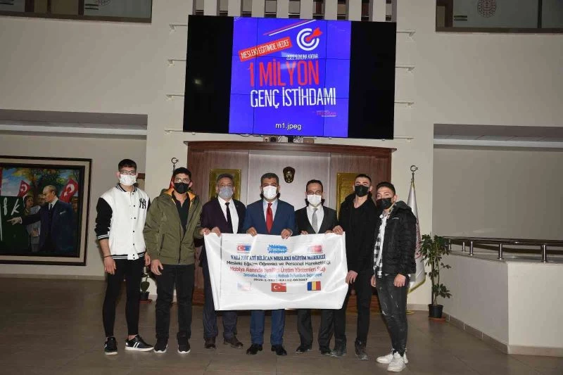 Denizli Vali Necati Bilican Mesleki Eğitim Merkezi Öğrencileri Erasmus + mesleki eğitim öğrenci ve personel hareketliliği projesi kapsamında “Mobilya Alanında Yenilikçi Üretim Yöntemleri Stajı” için Romanya’ın Bükreş iline gidiyor. Stajlarını Avrupa Birliği ülkesi olan Romanya’da yapacak öğrencileri İl Milli Eğitim Müdürü Süleyman Ekici makamında kabul etti. İl Milli Eğitim Müdürü Süleyman Ekici, “Türkiye Ulusal Ajansı tarafından kabul edilen “Mobilya Alanında Yenilikçi Üretim Yöntemleri Stajı” projemiz kapsamında 16 Ocak 2022 - 28 Ocak 2022 tarihleri arasında, mobilya iç mekan tasarımı alanından 6 öğrencimiz Romanya -Bükreş’deki Modella Concept Mobilya Fabrikası’nda, 6 öğrencimiz ise Casa Di Adriano Srl Mobilya işletmesinde staj faaliyetlerine katılacaklardır. Projemizin hedefi; Staj faaliyetlerinde yer alacak öğrencilerimizin tüm ürünlerde aynı kalite ve ölçü hassasiyetinde üretim sağlayan ve bilgisayar teknolojisi ile kontrol edilen CNC makineleri ile mobilya üretimi ile ilgili mesleki bilgi, beceri ve yeterliklerini artırmaları ve bunun sonucunda sektörde iyi şartlardaki istihdam imkanlarından yararlanmalarının sağlanmasıdır” dedi.