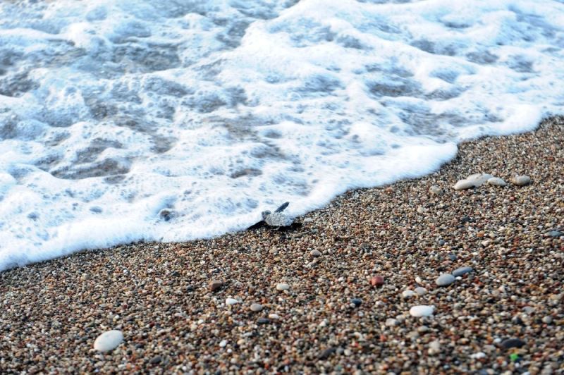 Doğdukları Çıralı kumsalına sadakatle bağlı olan caretta caretta yavruları yaklaşık 25 yıl sonra doğduğu kumsala geri dönmek için denize koştu.