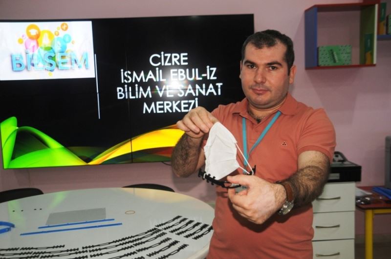 Her zaman sağlık çalışanlarının yanında olduklarını belirten Cizre İsmail Ebul-İz Bilim ve Sanat Merkezi Müdürü Murat Işıkoğlu, korona virüs ile mücadele eden sağlıkçıların yüzlerinde ve kulak arkalarında oluşan yaralardan etkilenerek, sağlıkçılar için maske tutucu aparatı üretmeye başladıklarını söyledi. Işıkoğlu, “Cizre İsmail Ebul-İz Bilim ve Sanat Merkezi olarak bu salgın süreci boyunca hayatı pahasına çalışan sağlıkçılarımıza destek olmak için yüz koruyucu siperliklerden ürettik. Sağlıkçılarımızın uzun süre kullandıkları bez maskeden kaynaklı yanaklardaki kızarıklık ve kulak arkasında oluşan yaralar oluştuğunu görünce bez maske tutucu aparatını tasarlayıp, üretmeye başladık. Bilim merkezimizde ürettiğimiz bu maske tutucu aparatı sayesinde sağlıkçılarımızın yanaklarında kızarıklık ve kulak arkalarında hiç yara olmadan maskelerini rahatça kullanabileceklerdir” dedi.