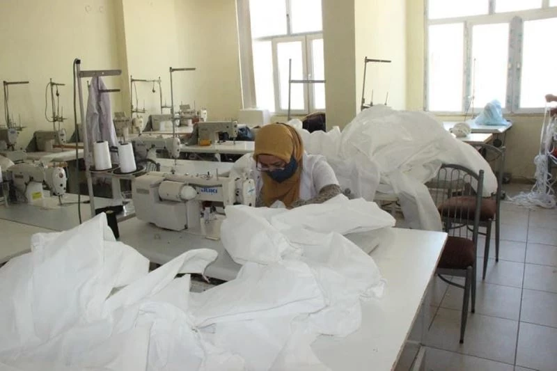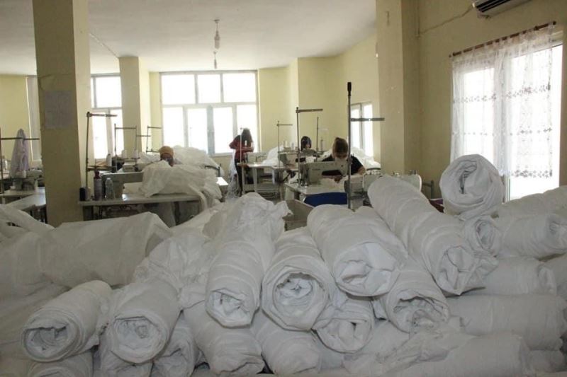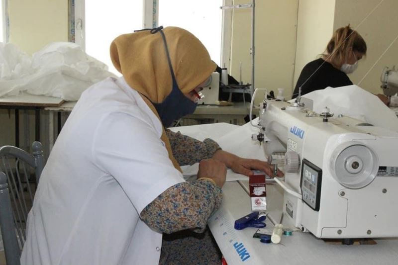 Şırnak’ın Cizre İlçe Halk Eğitim Merkezi Müdürlüğü, yeni tip korona virüs ile mücadele eden sağlık görevlileri için tulum üretimine başladı.