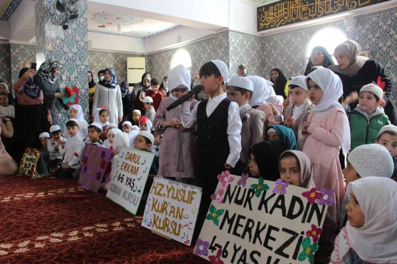 Yoğun katılımın olduğu gözlenen programda Kur’an kurslarında Kur’an-ı Kerim’i okumasını öğrenen çocuklar için bir dizi etkinlik düzenlendi. Programda çocuklar, Kur’an kurslarında öğrendikleri ezan, mevlit, dua, ilahi ve çeşitli dallarda yeteneklerini sergiledi.