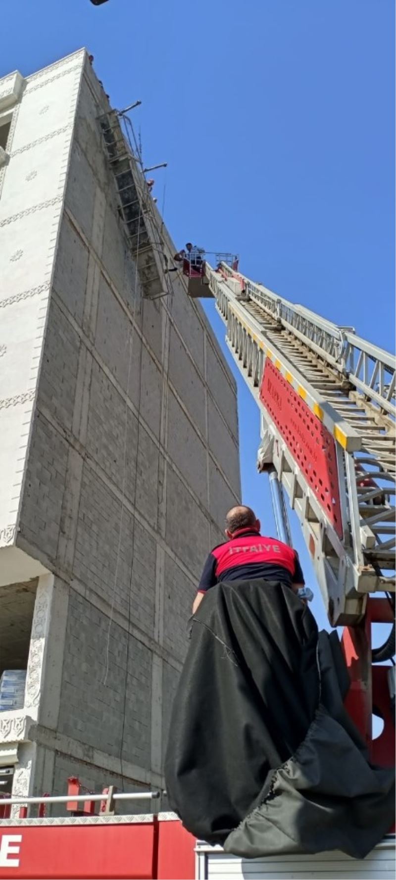 Cizre’de inşaat iskelesinde mahsur kalan işçiyi itfaiye ekipleri kurtardı