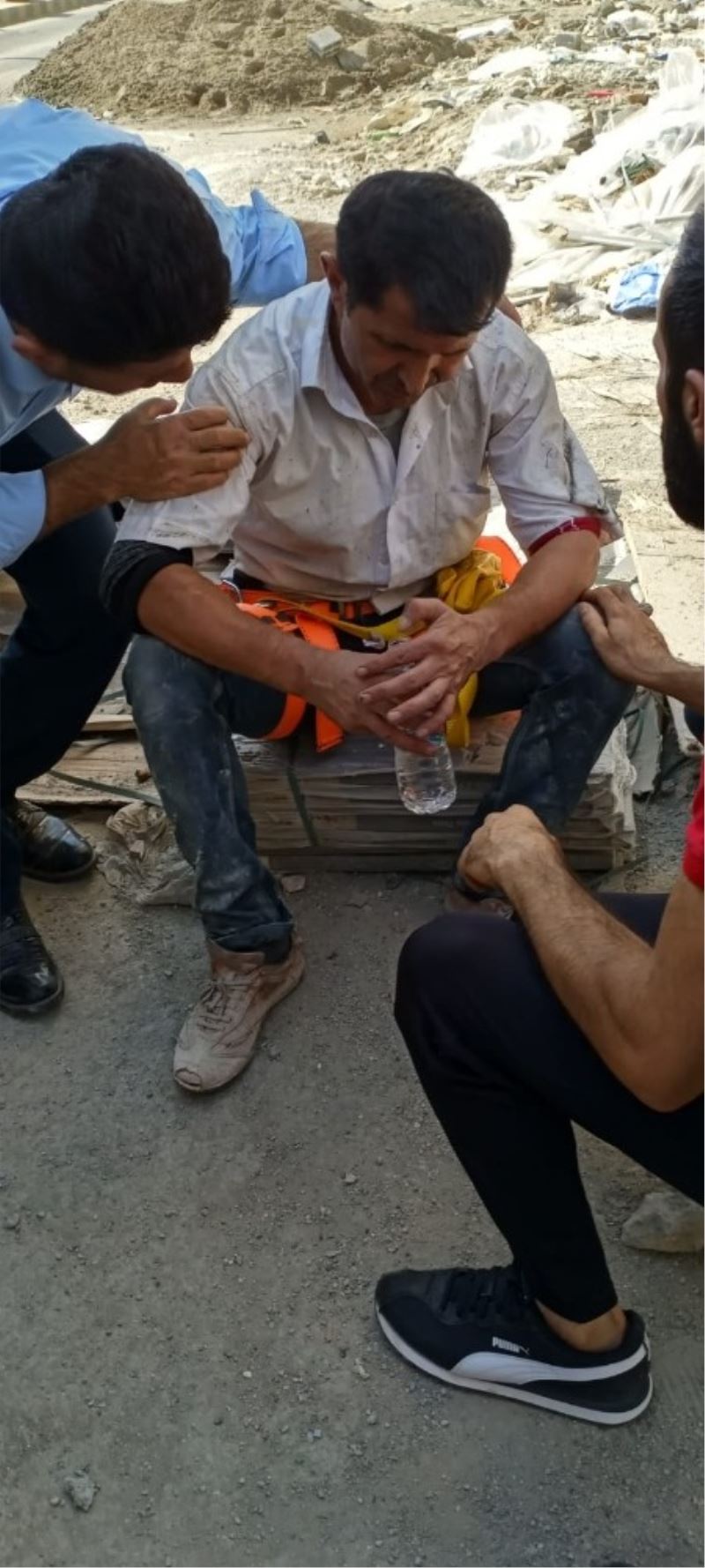 Cizre’de İdil Caddesindeki bir binanın dış cephesinde motorlu iskele üzerinde çalışan Bahattin Ocal, iskele halatının kopması sonucu mahsur 6’ncı katta mahsur kaldı. İnşaatın 6 katında havada mahsur kalan çalışma arkadaşlarını kurtaramaya çalışan diğer işçilerin çabası sonuç vermeyince itfaiye ekiplerine haber verildi. İhbar üzerine olay yerine itfaiye, sağlık ve polis ekipleri sevk edildi. İşçinin mahsur kaldığı yere gelen itfaiye erleri, Ocal’ı kurtarmak için çalışma başlattı. Mahsur kalan işçi, itfaiye merdiveni ile kurtarılarak güvenli bir şekilde aşağı indirildi.