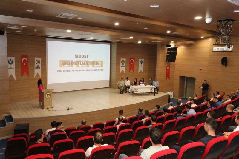 Cizre Kaymakamlığı ve Aile ve Sosyal Hizmetler İlçe Müdürlüğü koordinesinde, belediye konferans salonunda "Kadına El Kal-Ka-Maz" sloganıyla kadına yönelik şiddetle mücadelede farkındalık eğitimi programı düzenlendi.