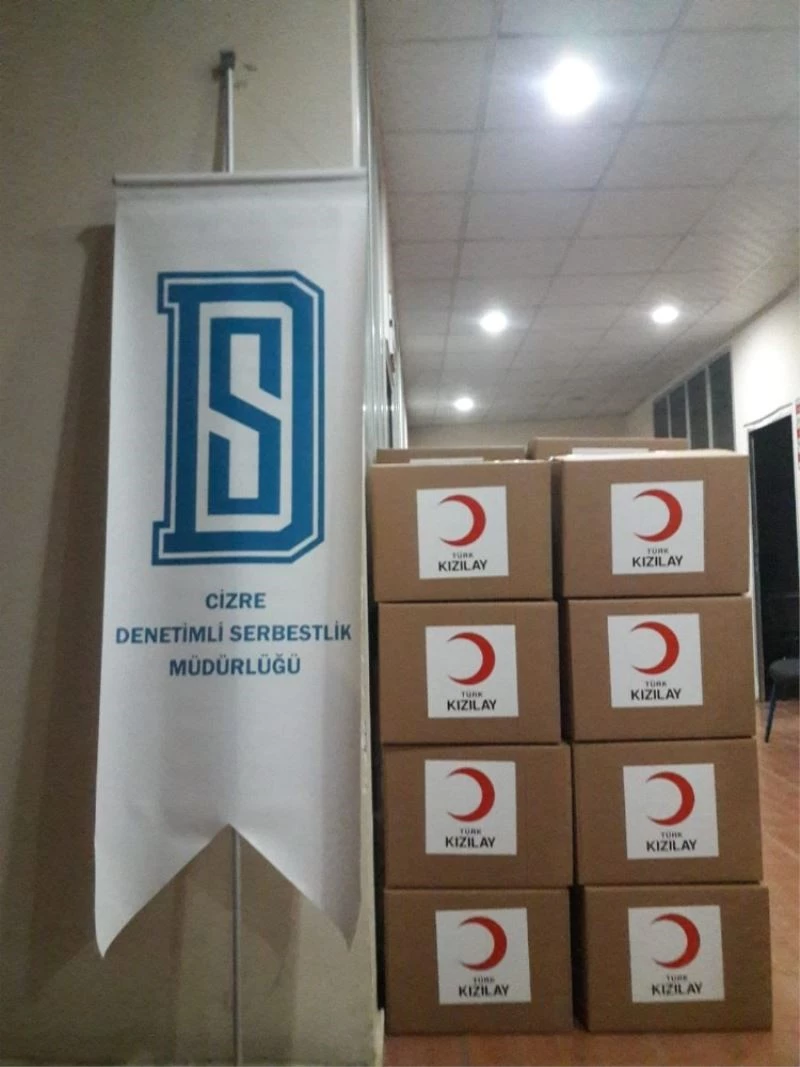 Denetimli Serbestlik Müdürlüğünden yapılan açıklamada Cizre Cumhuriyet Başsavcısı Korhan Sert’in koordinatörlüğünde Cizre Kızılay Şubesi ile yapılan iş birliği sonucu denetimli serbestliğe tabi olan ihtiyaç sahibi 50 yükümlü ailesine gıda yardımı yapıldığı kaydedildi. Gıda kolilerinin denetimli serbestlikten sorumlu Cumhuriyet Savcısı Fatih Nuranioğlu’nun eşliğinde Denetimli Serbestlik Müdürlüğü görevlileri tarafından yükümlülerin evlerine gidilerek ailelerine teslim edildiği ifade edildi.